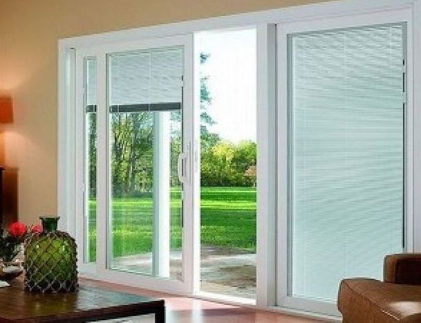 High quality energy efficient sliding patio doors. You have the option of getting a door with internal blinds. The blinds can be raised or lowered and can be tilted up or down depending on the angle of the sun. The blinds can be closed completely for privacy. Internal blinds are a very popular option if you have neighbors that are close to you, especially in condo and townhome communities.